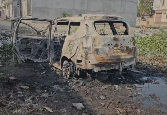 हरदोई में गूगल मैप ने दिया धोखा, तंग गलियों में फंसी कार में लगी आग, चालक कूदकर बचा