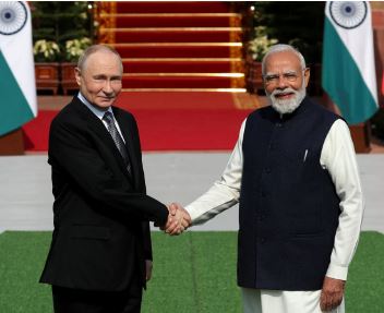 रूस के राष्ट्रपति व्लादिमीर पुतिन दो दिवसीय भारत दौरे पर हैं। गुरुवार को प्रधानमंत्री नरेंद्र मोदी ने एयरपोर्ट पर उनका स्वागत किया और अपने वाहन से उन्हें प्रधानमंत्री आवास लेकर गए, जहाँ प्राइवेट डिनर का आयोजन किया गया।