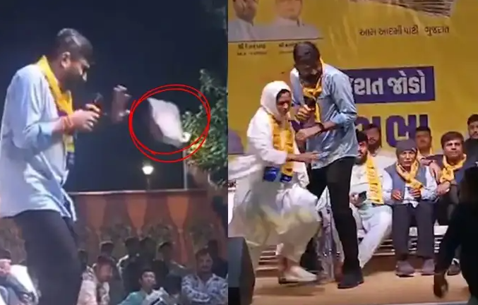 जामनगर में AAP विधायक गोपाल इटालिया पर जूता फेंका, मंच पर अफरा-तफरी, आरोपी कांग्रेस कार्यकर्ता हिरासत में