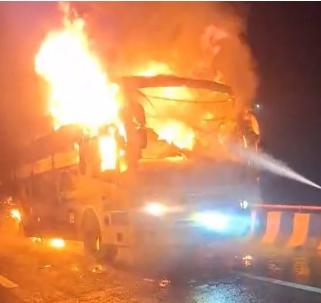 चलती बस में लगी भीषण आग, यमुना एक्सप्रेस-वे पर बड़ा हादसा टला; सभी यात्री सुरक्षित