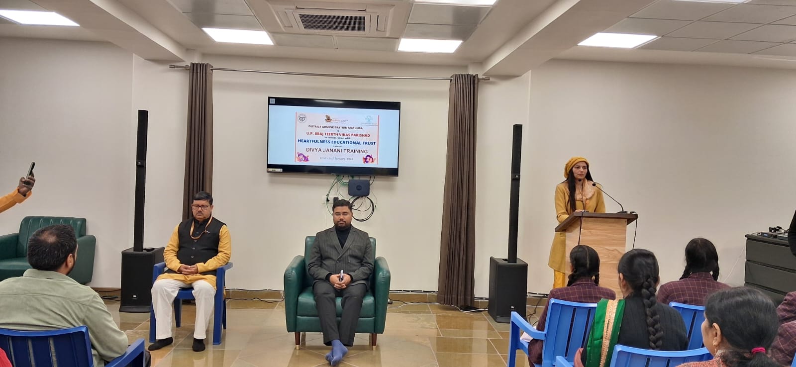ध्यान केंद्र में आयोजित आध्यात्मिक समारोह में मथुरा केंद्र के साथ ही लखनऊ से आए हार्टफुलनेस प्रशिक्षकों की विशेष रूप से उपस्थिति रही। उक्त प्रशिक्षक जिला प्रशासन,मथुरा व उत्तर प्रदेश ब्रज तीर्थ विकास परिषद के सहयोग से आंगनबाड़ी कार्यकत्रियों के लिए आयोजित दिव्य जननी प्रशिक्षण कार्यक्रम के संचालन के लिए मथुरा आए हैं। कार्यक्रम का आयोजन हार्टफुलनेस एजुकेशन ट्रस्ट द्वारा किया जा रहा है। ट्रस्ट की प्रोग्राम डायरेक्टर शालिनी महरोत्रा ने बताया कि प्रशिक्षण कार्यक्रम’ मथुरा के सभी ब्लॉक में 22 से 24 जनवरी, 2026 में किया जा रहा है। प्रशिक्षण कार्यक्रम में रिलैक्सेशन, मेडिटेशन व प्रार्थना से जुड़े सत्र आयोजित किए जा रहे हैं। उन्होंने बताया कि प्रशिक्षित आंगनबाड़ी कार्यकत्रियां गांव-गांव जाकर गर्भवती महिलाओं को शारीरिक के साथ ही मानसिक स्वास्थ्य लाभ पहुंचा सकेंगीं।