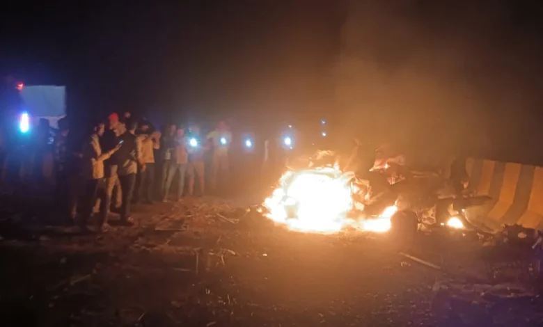 आग इतनी तेजी से फैली कि कार में सवार लोग बाहर नहीं निकल सके और करीब आधा दर्जन लोग जिंदा जल गए। आशंका है कि बोलेरो में सवार कुछ लोग भी आग की चपेट में आए। इस हादसे में अब तक 11 लोगों की मौत की पुष्टि हुई है। हादसे के बाद मौके पर अफरा-तफरी मच गई। सूचना मिलते ही पुलिस और फायर ब्रिगेड की टीम मौके पर पहुंची और कड़ी मशक्कत के बाद आग पर काबू पाया। प्रशासन ने राहत और बचाव कार्य तेज कर दिया है, वहीं मृतकों की पहचान और घायलों के उपचार की प्रक्रिया जारी है।